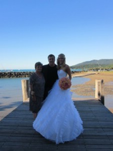 A picture of my wedding day with my husband and mother in law